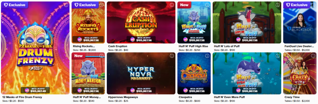 FanDuel Casino dispone di una forte e curata libreria di Oltre 600–2.000 titoli (varia a seconda dello stato), concentrandosi sulla qualità rispetto alla quantità.